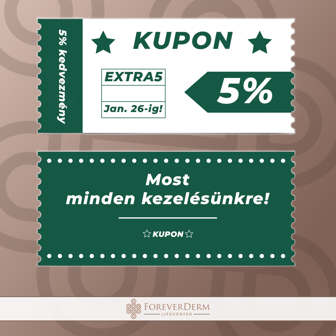*Az esztétikai szolgáltatásokra és a peptidekre az extra 5% promóció nem érvényes. Az EXTRA 5% kedvezmény csak online vásárlás esetén érhető el, azokra a szolgáltatásokra és termékekre, amik online megvásárolhatóak.