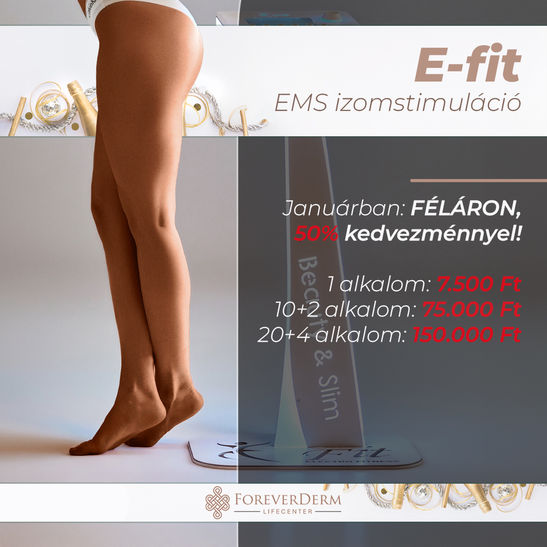 Formáld a tested hatékonyan és gyorsan az E-Fit kezeléssel! Most januárban minden csomag féláron érhető el, így könnyebb elindulni a céljaid felé.