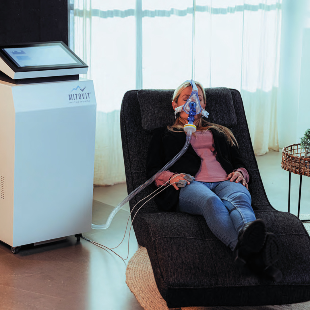 Az IHHT terápia során egy kényelmes fotelben pihensz, miközben egy maszkon keresztül célzottan beállított oxigénkoncentrációjú levegőt lélegzel be. Ez egy olyan módszer, ami a magaslati edzés elvén működik – csak itt nem kell hegyre menni. Szakmai nyelven megfogalmazva: hipoxiás (alacsonyabb oxigénszint), majd hiperoxiás (magasabb oxigénszint) szakaszok váltják egymást. Ez a kontrollált „oxigénhullámzás” nem megterhelő, hanem finom, adaptív inger a sejteknek, ami beindítja a természetes túlélő, javító és regenerációs folyamatokat.
