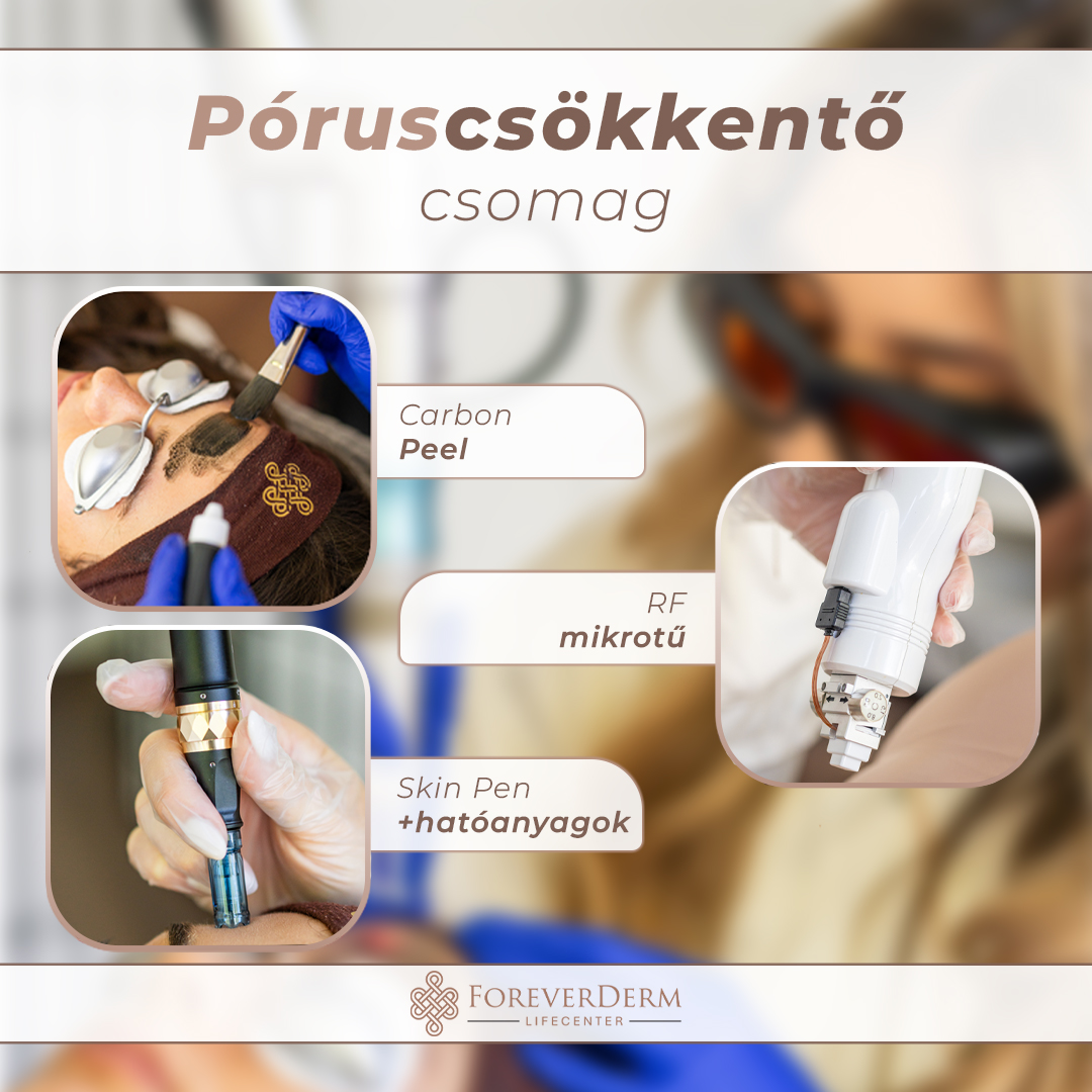 A rádiófrekkvenciás mikrotűzés a bőr mély rétegeibe juttat hőenergiát ultravékony tűk segítségével, amely intenzív kollagén- és elasztinképződést indít el. A kezelés feszesíti a bőrt, összehúzza a pórusokat és javítja a bőr össztextúráját. Ez az egyik leghatékonyosabb póruscsökkentő technológia, amely tartós szerkezeti javulást eredményez. Három alkalmas kúra után a pórusok drámaian kisebbé, kevésbé láthatóvá válnak, a bőr tömörödik.